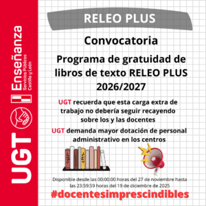 El 26 de noviembre de 2025 se publica en BOCYL la Orden EDU/ 1308 /2025 de 11 de noviembre por la que se convoca la participación en el Programa de gratuidad de libros de texto «RELEO PLUS» y las ayudas en él contenidas, cofinanciadas por el Ministerio de Educación y