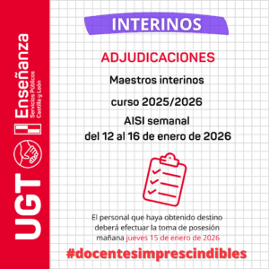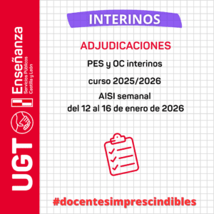 Interinos PES y otros cuerpos: Curso 2025-2026. AISI semana del 12 al 16 de enero de 2026. Adjudicación.