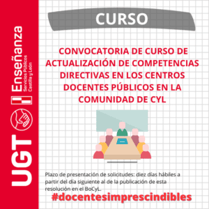RESOLUCIÓN de 7 de enero de 2026, de la Dirección General de Innovacióny Formación del Profesorado, por la que se convoca el curso de actualización decompetencias directivas en los centros docentes públicos en la Comunidad de Castillay León. https://bocyl.jcyl.es/boletines/2026/01/20/pdf/BOCYL-D-20012026-12-15.pdf