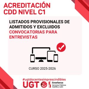 Convocatoria acreditación CDD Nivel C1 – Curso 2025-26. Listados provisionales de admitidos y excluidos. Convocatorias para entrevistas