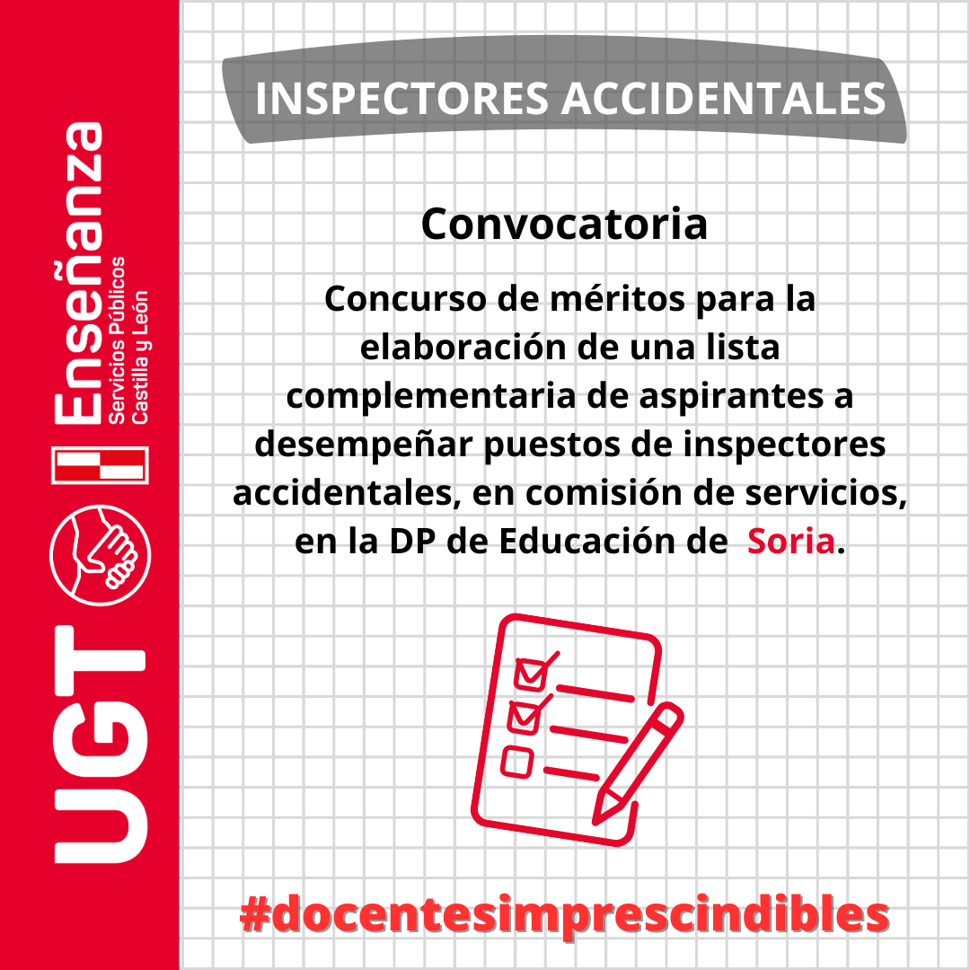 Convocatoria de concurso de méritos para la elaboración de una lista complementaria de aspirantes a desempeñar puestos de inspectores accidentales, en comisión de servicios, en la Dirección Provincial de Educación de Soria.