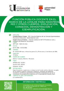 OFERTAS AFILIADOS DE UGT Para más información entra en el siguiente enlace: https://extensionuniversitaria.unileon.es/cursos-y-matriculas/curso/2025ceu00101-funcion-publica-docente-en-el-marco-de-la-lomloe-para-maestros-pes-y-otros-cuerpos-explicacion-consejos-demostracion-y-ejemplificacion