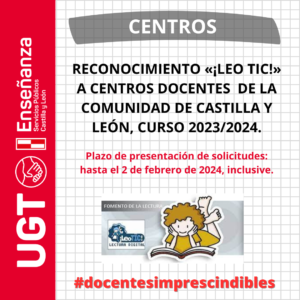 CONSEJERÍA DE EDUCACIÓN ORDEN EDU/1396/2023, de 28 de noviembre, por la que se efectúa la convocatoria para la concesión del reconocimiento «¡leo TIC!» a centros docentes no universitarios sostenidos con fondos públicos de la Comunidad de Castilla y León, en el curso 2023/2024.