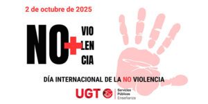 Hoy, 2 de octubre, con motivo del Día Internacional de la No Violencia, desde el Sector de Enseñanza de UGT Servicios Públicos queremos reafirmar nuestro compromiso con la paz, la educación en valores y la defensa de los derechos humanos. La escuela pública debe ser un espacio libre de violencia,