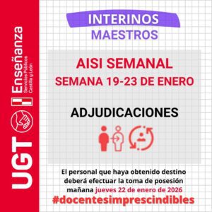 Maestros interinos: curso 2025/2026. AISI semana del 19 al 23 de enero de 2026. ADJUDICACIONES