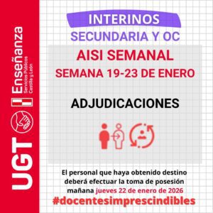 Interinos PES y otros cuerpos: Curso 2025-2026. AISI semana del 19 al 23 de enero de 2026. ADJUDICACIONES