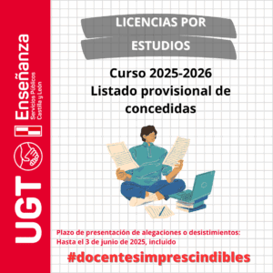 Publicado en EDUCACYL el 28-05-2025: LISTADOS PROVISIONALES DE LICENCIAS CONCEDIDAS Y DENEGADAS: La Resolución de 28 de mayo de 2025, de la Dirección General de Recursos Humanos (103 KB) (2 páginas) resuelve el listado provisional de licencias concedidas y denegadas en el procedimiento de concesión de licencias por estudios destinadas al personal funcionario docente de