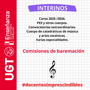 Interinos. Curso 2025 /2026. PES y otros cuerpos. Convocatorias extraordinarias. Cuerpo de catedráticos de música y artes escénicas. Listado definitivo de baremación de la especialidad de violonchelo