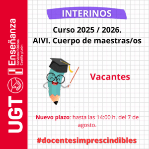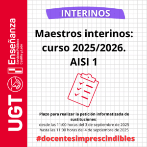 Maestros interinos: curso 2025/2026. AISI 1. Plazo de peticiones