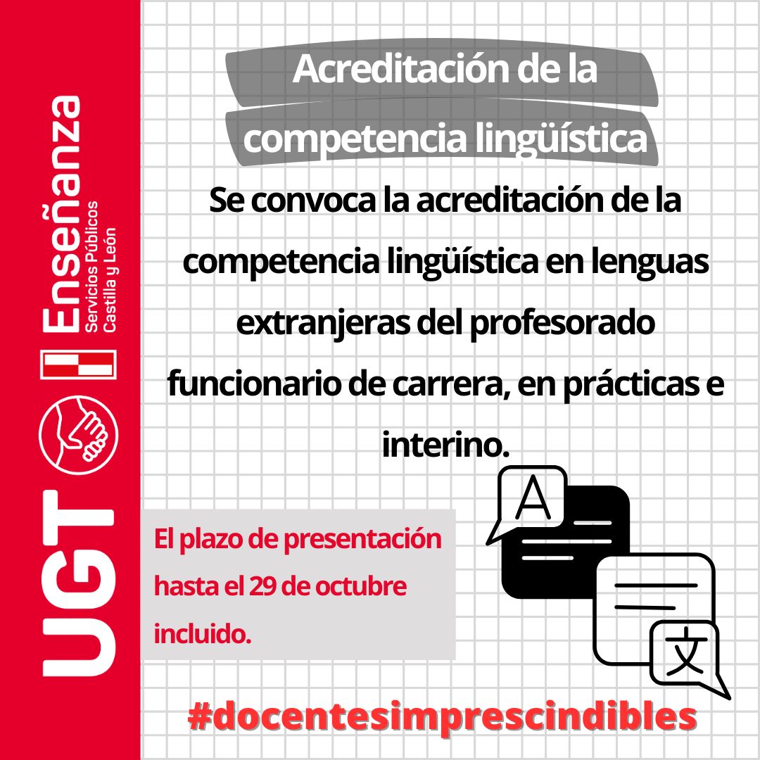 CONVOCATORIA: La Resolución de 9 de octubre de 2025, de la Dirección General de Recursos Humanos (1000.5 KB) (14 páginas) (BOCYL de 17-oct-2025) convoca, en el curso 2025/2026, la acreditación de la competencia lingüística en lenguas extranjeras del profesorado funcionario de carrera, en prácticas e interino, del cuerpo de maestros, de los cuerpos de catedráticos y profesores de enseñanza secundaria, del cuerpo, a extinguir, de