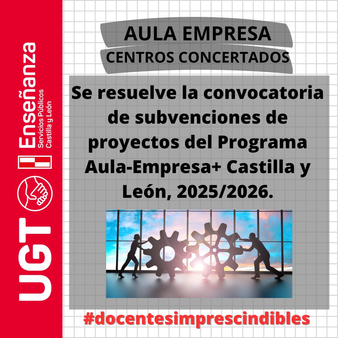 Se resuelve la convocatoria de subvenciones destinadas al desarrollo de proyectos del Programa Aula Empresa Castilla y León, en centros docentes de la Comunidad de Castilla y León que impartan ciclos formativos de formación profesional en régimen de concierto, el curso académico 2025/2026.